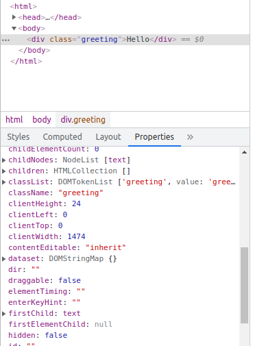 3. ์ดํธ๋ฆฌ๋ทฐํธ ๋ ธ๋(attribute node) : ์์์ ์์ฑ์ ๊ฐ๋ฆฌํค๋ ๋ ธ๋. ์ดํธ๋ฆฌ๋ทฐํธ ๋ ธ๋๋ ์์ ๋ ธ๋์ ๋ฌ๋ฆฌ ๋ถ๋ชจ ๋ ธ๋์ ์ฐ๊ฒฐ๋์ด ์์ง ์๋ค. → div ํ๊ทธ๋ body ํ๊ทธ์ ์ฐ๊ฒฐ๋์ด์์ผ๋, class="greeting" ์ ์์ ๋ ธ๋๋๋ง ์ฐ๊ฒฐ๋์ด ์๋ค.