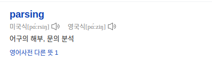 - ํ์ฑ(parsing) : ๋ฌธ์ฅ์ด๋, ๋ฐ์ดํฐ ๋ฌธ์์ด์ ๋ถ์ํ๊ณ ํด๋ถํ์ฌ ์ํ๋ ๋ฐ์ดํฐ๋ฅผ ๋ฝ์๋ด๋ ๊ธฐ์