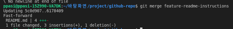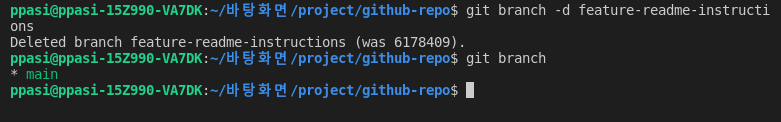 feature-readme-instructions ๋ธ๋์น์์ readme ํ์ผ์ ๋ฐ๊ฟจ์ ๋ main ๋ธ๋์น๋ ์๋ฌด๋ฐ ์ํฅ์ ๋ฐ์ง ์๋๋ค.