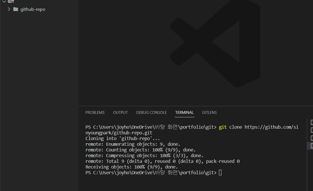 /*๋ด๊ฐ ์ํ๋ ํด๋๋ฅผ ์๋ํฐ๋ก ์ด์ด์ค ํ */ $git clone repository address