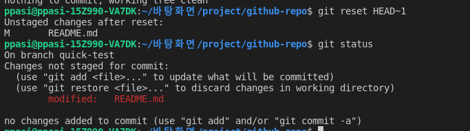 reset --hard ์ต์ ใ ๋ฅด ์ฌ์ฉํ๋ฉด unstaged๋ ์๋๊ณ remove๋ง ๋๋ค.