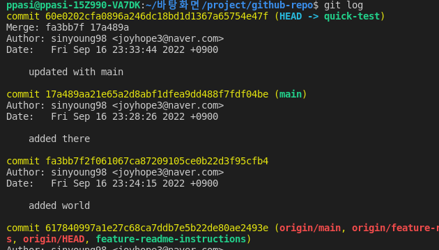 git log๋ฅผ ์ฌ์ฉํ๋ฉด ๋ชจ๋ commit์ ๋ณผ ์ ์๋ค.