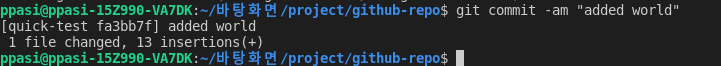 ํ์ผ ํ๋๋ง add ์ํค๋ ๊ฒฝ์ฐ -am ์ต์ ์ ์ฌ์ฉํด์ add์ commit์ ๋์์ ์งํํ ์ ์๋ค.