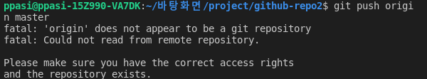 clone ๋ฐ์ง ์์ ๋ก์ปฌ repository ์์ github ๋ ํฌ๋ก push ํ๋ฉด ๋ค์๊ณผ ๊ฐ์ ์๋ฌ๊ฐ ๋๋ค .
