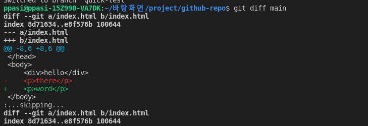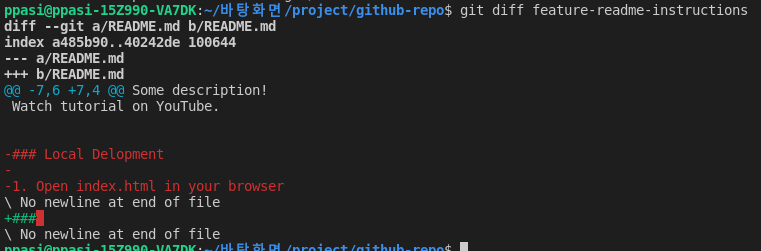 ๊ทธ ์ ์ diff๋ฅผ ์ฌ์ฉํ์ฌ ๋ฐ๋ ๋ด์ฉ์ ํ์ธํ ์ ์๋ค.