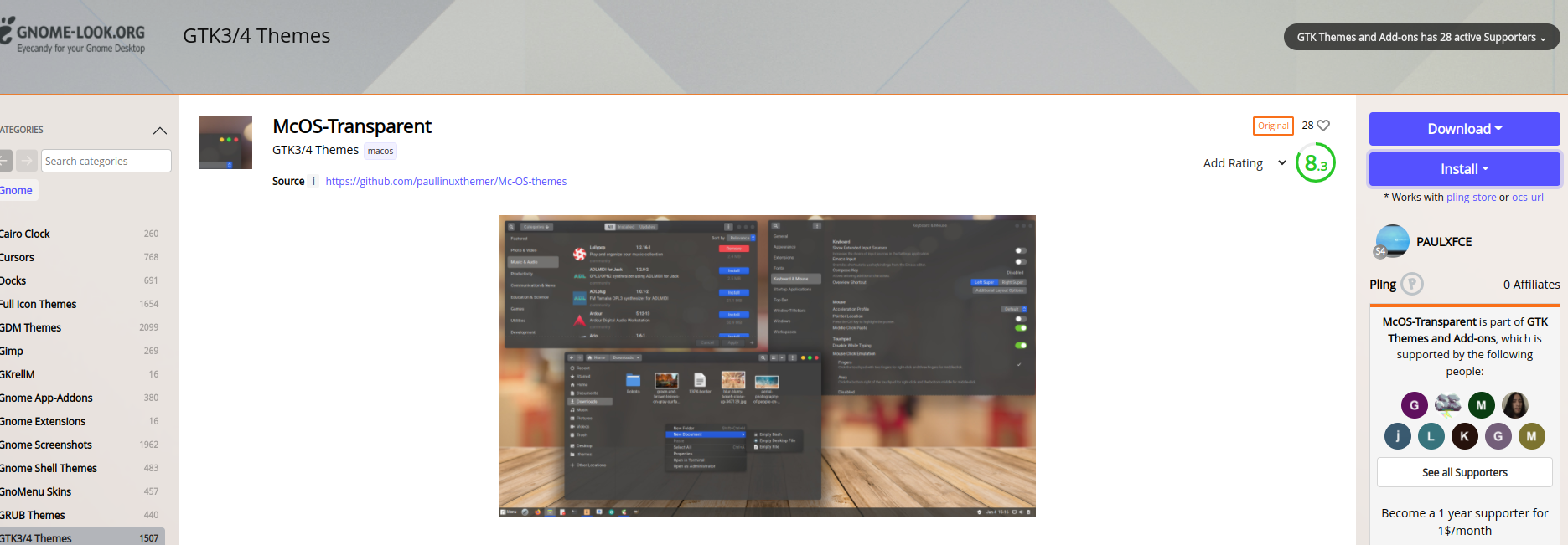 3. gnome-look์์ ๋ง์์ ๋๋ theme์ ๋ค์ด๋ฐ์์ค๋ค.