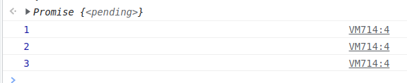 let promise1 = (value, time) => { return new Promise((resolve, reject) => { setTimeout(() => { resolve(console.log(value)) }, time); }); } let async1 = async () => { try{ await promise1(1, 1000); await promise1(2, 2000); await promise1(3, 3000); } catch(e){ console.log("rejected!"); } finally{ console.log("finally"); } } async1();.then ํธ๋ค๋ฌ