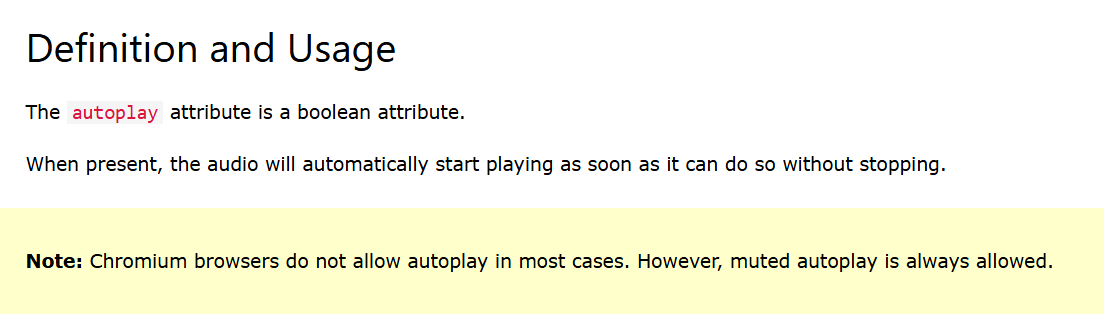 *λμ ν¬λ‘¬ λΈλΌμ°μ λ μλ μ¬μμ νμ©νμ§ μλλ€. muted μμ±μ ν¨κ» μ¬μ©ν΄μ€ λλ§ νμ©.