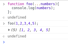 function sum(...numbers){ return numbers.reduce((acc, cur) => { return acc + cur; }) }Rest ํ๋ฆฌ๋ฏธํฐ๋ฅผ ์ฌ์ฉํ๋ฉด ์ธ์๊ฐ ๋ฐฐ์ด๋ก ๋ํ๋๊ฒ ๋๋ค.