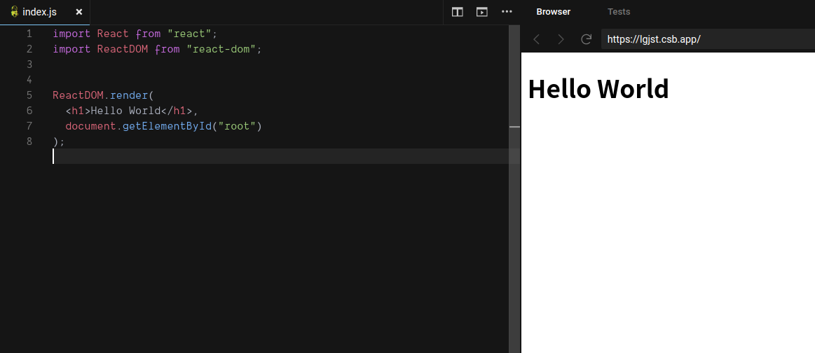 Codesandbox 사용해서 Hello world 출력해보기